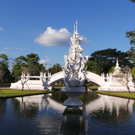 The last stop of today was a visit to the rather unconventional looking Wat Rong Khun Buddhist Temple, also known as the White Temple, in Chiang Rai. When you first walk up to it, it really has a WOW factor about it and like something out of a Disney fairytale film. The main temple is white and it's surrounding buildings that sit on a man made lake. The bridge to the main temple crosses a moat that is made out of hands, very cool and different! The site also includes scenes and characters from modern movies such as Star Wars, Superman, Pirates of the Caribbean, the Matrix and more! It's very surreal to walk around and still think that it's an actual practicing temple with monks and worshipers, of which there were many about. There is also a gold temple building which is also as striking. The whole place is worth a visit but don't expect old structures or ruins as this is kind of the opposite but very eccentric and beautiful too!