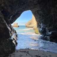 2 - Shark Fin Cove, a secluded beach with a huge rock in the shape of a shark fin and cave. A steep walk down. At the top of the cliff is a disused railway.